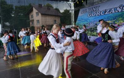 W dalszej części sobotniej uroczystości w amfiteatrze SATURN radośnie rozbrzmiewała regionalna nuta - muzyka, taniec i śpiew w wykonaniu Zespołu Regionalnego GORCE z Kamienicy oraz Kapeli CIUPAGA. Pierwszy dzień obchodów Dni Gorczańskich zakończyła zabawa taneczna prowadzona przez DJ’a.