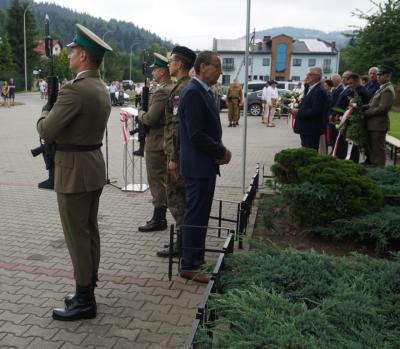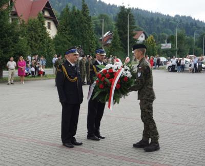 Apel Pamięci przeprowadził mł. chor. Szymon Rybka z Karpackiego Oddziału Straży Granicznej w Nowym Sączu, a poszczególne delegacje złożyły okolicznościowe wiązanki kwiatów przy pomniku 1 PSP AK.