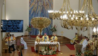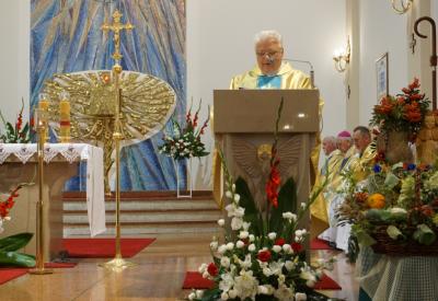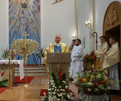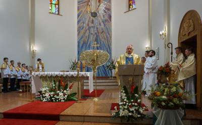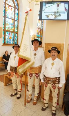 Następnie wszyscy uczestnicy Odpustu Partyzanckiego przeszli do kościoła parafialnego, gdzie w intencji poległych i zmarłych żołnierzy 1 PSP AK odbyła się Msza św. pod przewodnictwem ks. abp. Henryka Józefa Nowackiego. O muzyczną oprawę liturgii zadbała Gminna Orkiestra Dęta z Kamienicy.