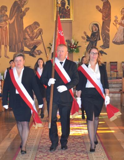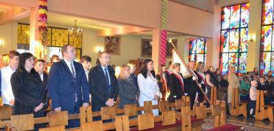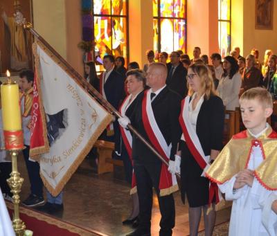 Uroczystość przekazania sztandaru, ufundowanego przez Radę Rodziców i społeczność lokalną, rozpoczęła się Mszą św., którą celebrował ks. Ryszard Kochanowicz oraz zaproszeni księża – absolwenci zalesiańskiej placówki. Poświęcony sztandar został uroczyście przeniesiony do szkoły.
