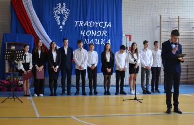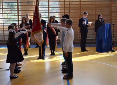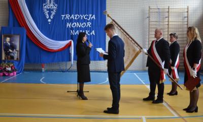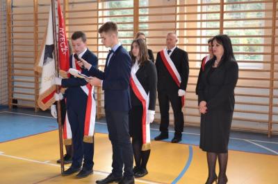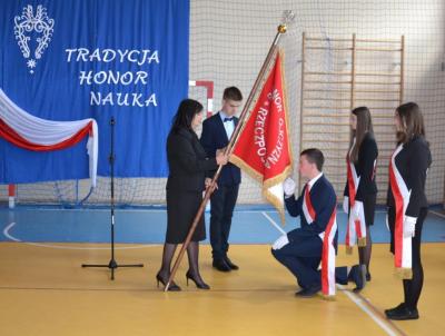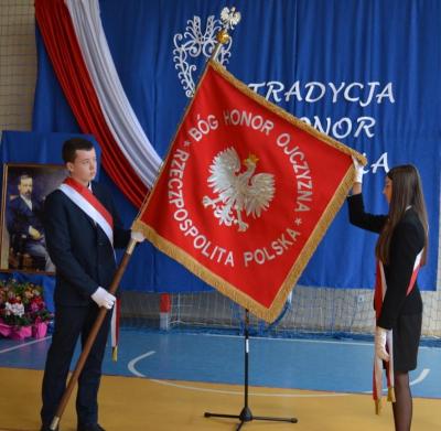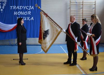 „Chlubne tradycje tej szkoły są powodem do zasłużonej dumy, ale też zobowiązaniem do patriotycznej postawy i wzorowej nauki” - brzmiał akt nadania sztandaru odczytany przez Przewodniczącą Rady Rodziców. Następnie sztandar przejęli uczniowie reprezentujący poczet sztandarowy szkoły.