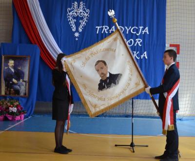 Po wprowadzeniu sztandaru został odczytany Akt nadania sztandaru Szkole Podstawowej im. Henryka Sienkiewicza w Zalesiu. Następnie poczet sztandarowy składający się z rodziców przekazał pani Dyrektor sztandar szkoły jako symbol najwyższej wartości, honoru i tradycji, jako zobowiązanie do godnego wypełniania obowiązków wobec ojczyzny.