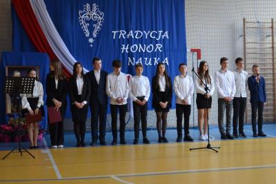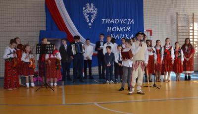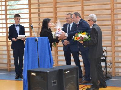 W dalszej kolejności odbyła się część artystyczna w wykonaniu dzieci i młodzieży szkolnej przygotowana pod kierunkiem p. Moniki Paszkowskiej i p. Agaty Gorczowskiej. Oprawę graficzną w postaci oryginalnej dekoracji zapewniła p. mgr Mariola Kozioł- Rusnarczyk. Uczniowie za swoje występy zostali nagrodzeni gromkimi brawami. Przewodniczący Samorządu Szkolnego podziękował wszystkim tym, którzy dbają o edukację dzieci: dyrekcji szkoły, nauczycielom i wychowawcom, wszystkim pracownikom szkoły, a także rodzicom oraz wszystkim gościom, którzy swoją obecnością zaszczycili i uświetnili szkolną uroczystość.