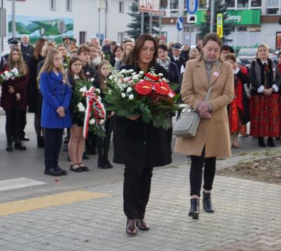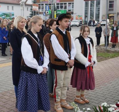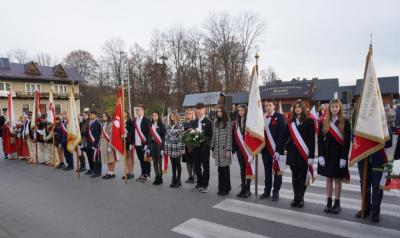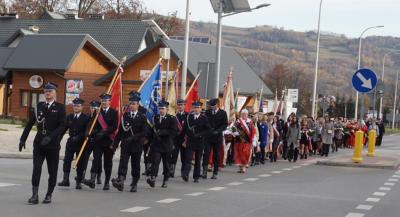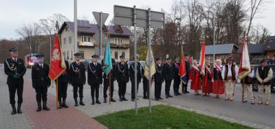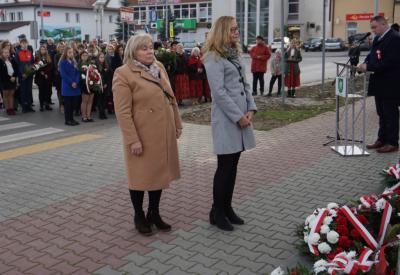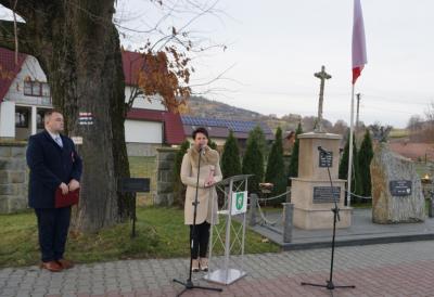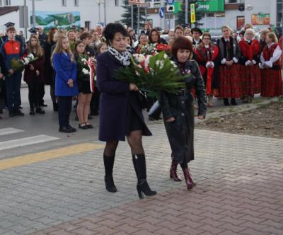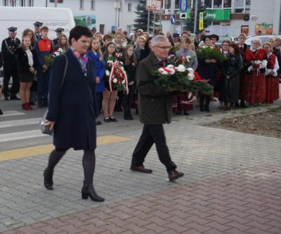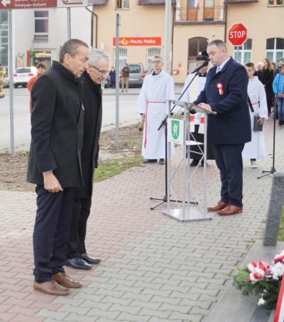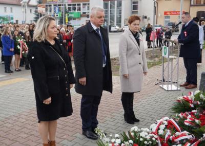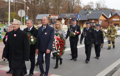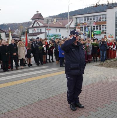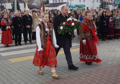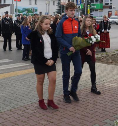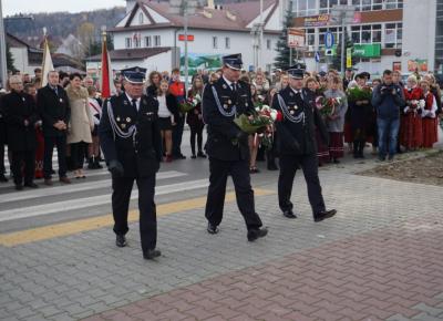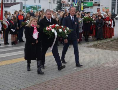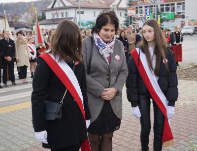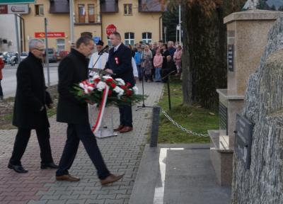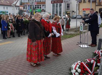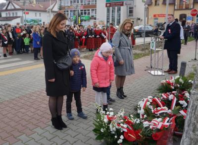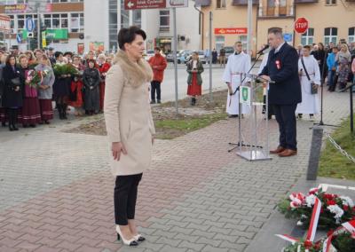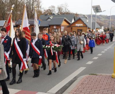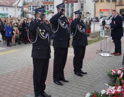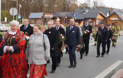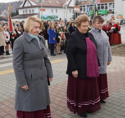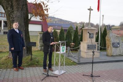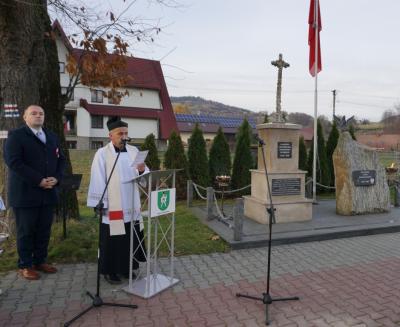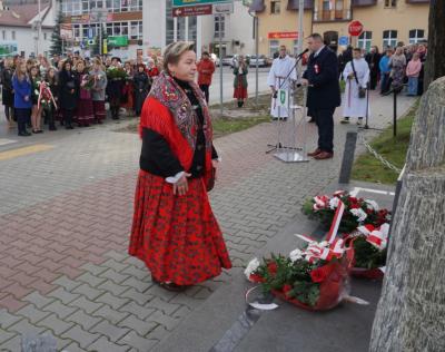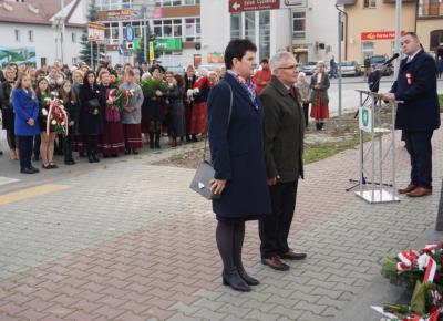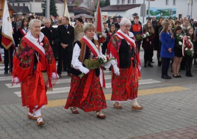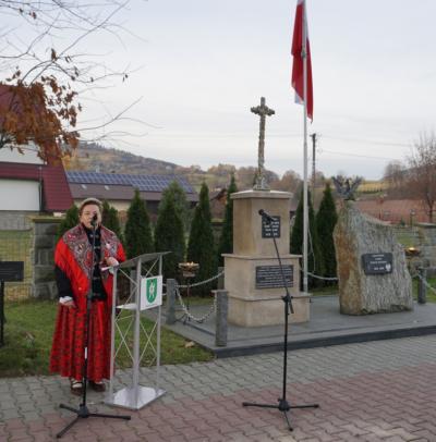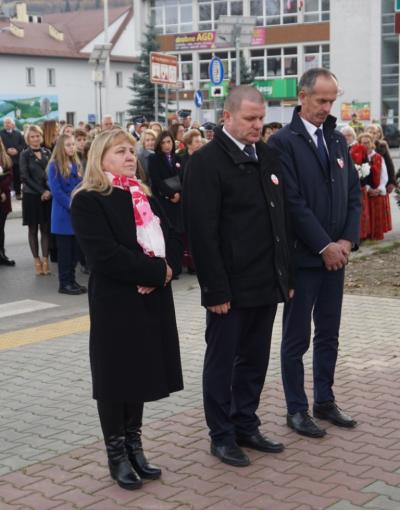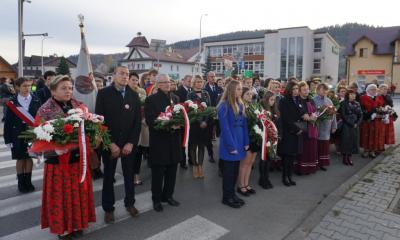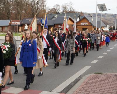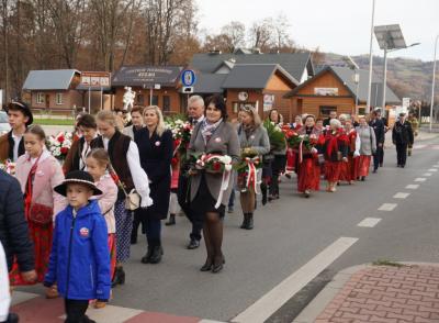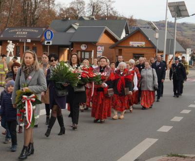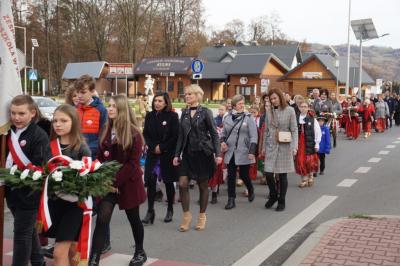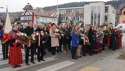 Po nabożeństwie uczestnicy obchodów Narodowego Święta Niepodległości przemaszerowali pod pomniki pamięci, gdzie uroczystość poprowadził pracownik GOKSiR i równocześnie Przewodniczący Rady Gminy Kamienica Hilary Majewski, a przemówienia wygłosili: Wójt Gminy Kamienica – Władysław Sadowski, Poseł na Sejm RP – Urszula Nowogórska i Wicestarosta Powiatu Limanowskiego – Agata Zięba. Również w tym miejscu, przez liczne delegacje, złożone zostały symboliczne wiązanki kwiatów.