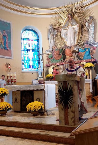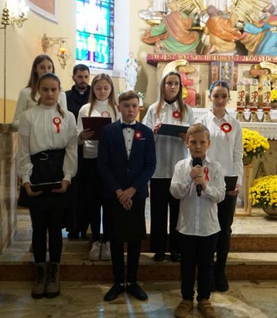 Przed Mszą Świętą, przed zgromadzonymi w świątyni, z krótkim programem artystycznym wystąpiła młodzież Szkoły Podstawowej nr 1 w Kamienicy. Uroczystej mszy przewodniczył proboszcz ks. Jan Betlej, który wygłosił religijno-patriotyczne kazanie. Do oprawy muzycznej liturgii włączyła się Gminna Orkiestra Dęta.