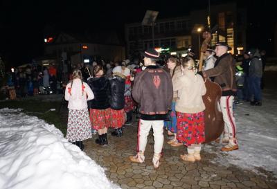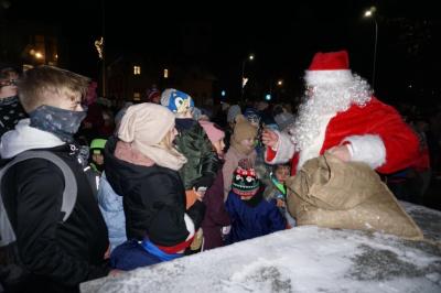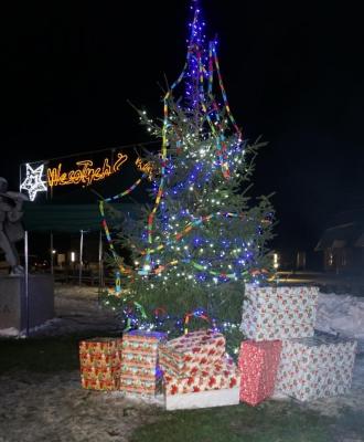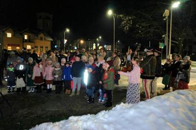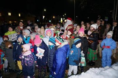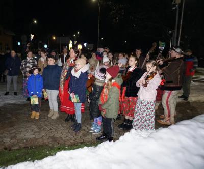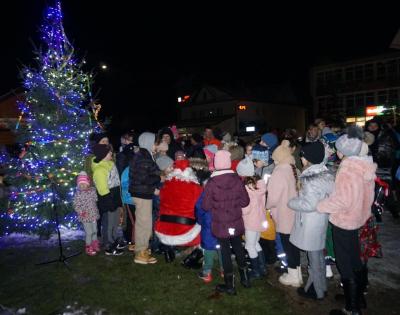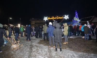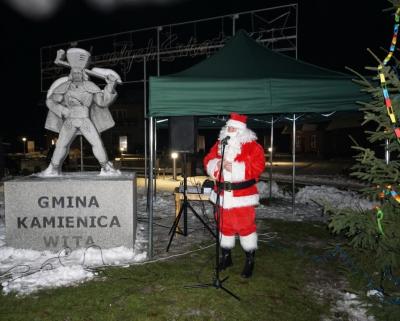 Zgodnie z tradycją taka choinka stanęła na kamienickim rynku. Uroczyste zapalenie światełek na tym drzewku odbyło się 16 grudnia przy akompaniamencie Zespołu Regionalnego „Gorce”. Zebranym przy choince i wszystkim mieszkańcom gminy życzenia świąteczne złożył wójt Władysław Sadowski. Obecny przy uroczystym odpaleniu światełek Święty Mikołaj obdarował prezentami najmłodszych uczestników ożywienia świątecznego drzewka.