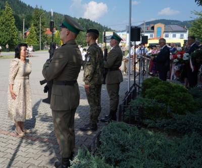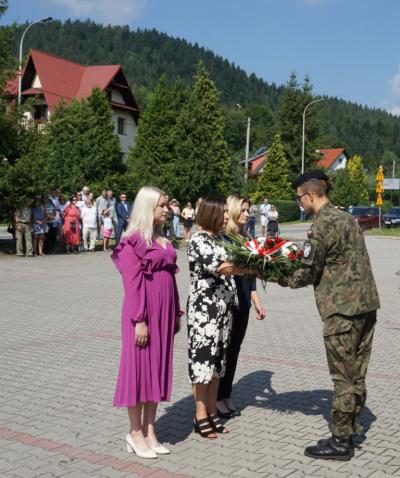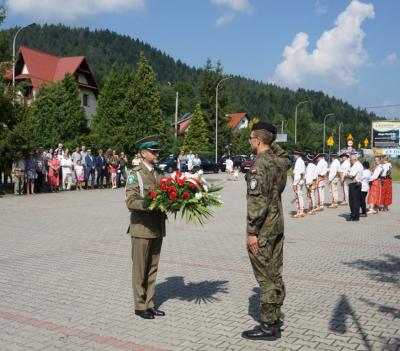 Apel Pamięci przeprowadził mł. chor. Marcin Borowiec z Karpackiego Oddziału Straży Granicznej w Nowym Sączu, a poszczególne delegacje złożyły okolicznościowe wiązanki kwiatów przy pomniku 1 PSP AK.