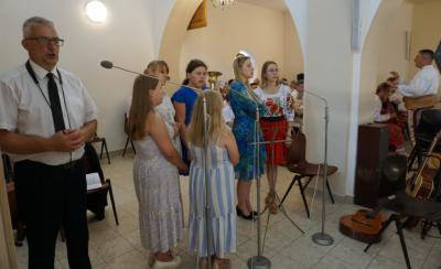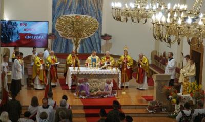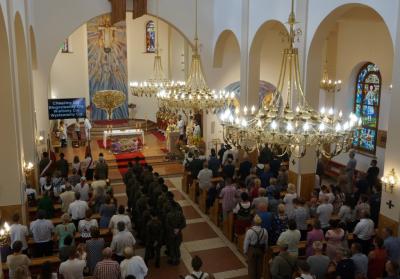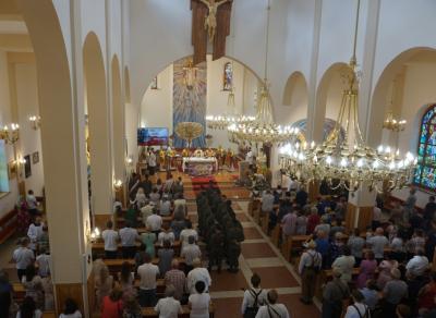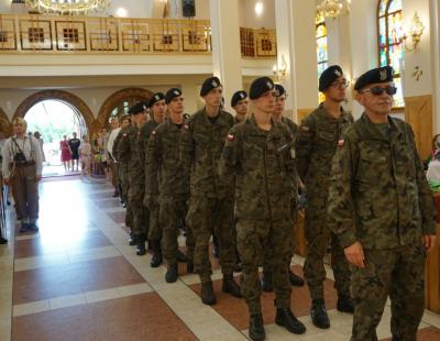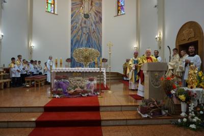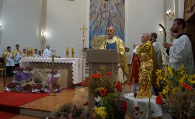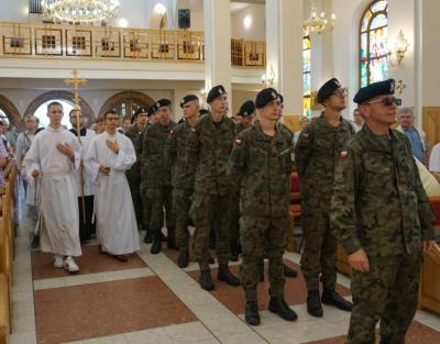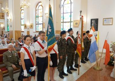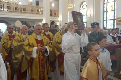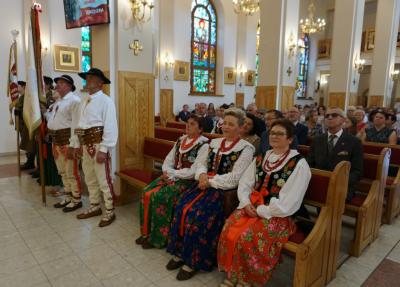 Następnie wszyscy uczestnicy Odpustu Partyzanckiego przeszli do kościoła parafialnego, gdzie w intencji poległych i zmarłych żołnierzy 1 PSP AK odbyła się Msza św. pod przewodnictwem ks. bp. Stanisława Salaterskiego. O muzyczną oprawę liturgii zadbała Gminna Orkiestra Dęta z Kamienicy.