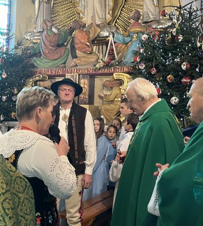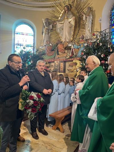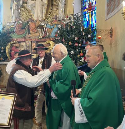 Gratulacje i życzenia w imieniu samorządu gminy Kamienica złożyli wójt Władysław Sadowski oraz przewodniczący Rady Gminy – Hilary Majewski, a także kamienicki oddział Związku Podhalan na czele z prezes Agatą Ziębą. Oprawę muzyczną uroczystości przygotował zespół regionalny „Gorce” wraz z kapelą.