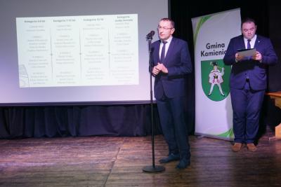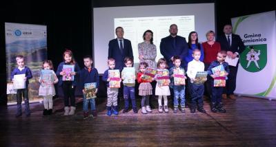 Dyplomy i nagrody książkowe laureatom konkursu wręczyli: wójt – Władysław Sadowski, dyrektor GOKSiR – Mirosław Haczek w Kamienicy, instruktor ds. realizacji zadań biblioteki powiatowej – Maria Trzupek oraz bibliotekarze z poszczególnych placówek bibliotecznych w Kamienicy, Zbludzy i Szczawy.