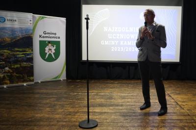 Nagrody za wybitne osiągnięcia wręczali: wójt Władysław Sadowski, wiceprzewodniczący Rady Gminy Stanisław Majda oraz Teresa Udziela, inspektor ds. oświaty w Urzędzie Gminy Kamienica.