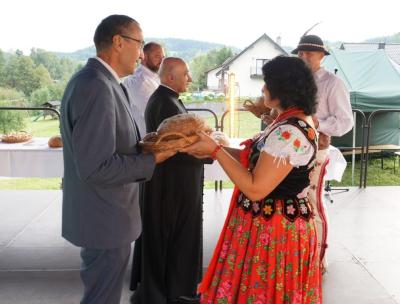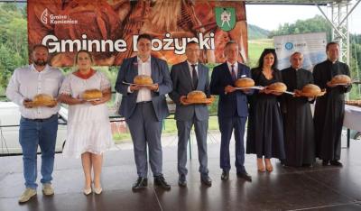 Po oficjalnym otwarciu święta plonów odbył się tradycyjny obrzęd dożynkowy, podczas którego na ręce Wójta Gminy Kamienica, Proboszcza Parafii Zalesie i Dyrektora Gminnego Ośrodka Kultury Sportu i Rekreacji w Kamienicy starostowie dożynek – Bogumiła Duda i Grzegorz Zelek złożyli tradycyjny bochen chleb, a poszczególne sołectwa wręczyły koszyki „z owocami z naszej gminnej ziemi”.