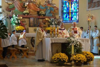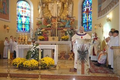 Koncelebransami uroczystej Mszy świętej byli: ks. proboszcz Jan Betlej, ks. prałat Kazimierz Pach, ks. płk Tadeusz Bieniek, który wygłosił religijno-patriotyczne kazanie. Oprawę muzyczną liturgii zapewnił Chór Parafialny.